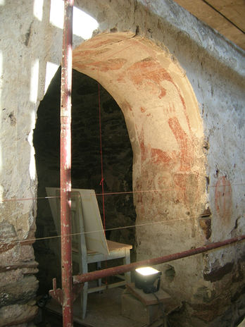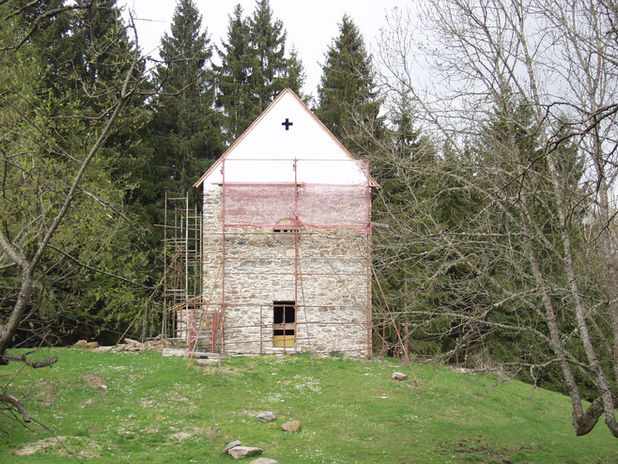 Die Sicherung des mittelalterlichen Raumes in seiner exklusiven Originalität und der spärlichen Reste großartiger mittelalterlicher Wandmalerei ist von großer Dringlichkeit und für die kommenden Jahre geplant. Legenden erzählen von einem keltischen Quellheiligtum (die Topographie des Ortes, Hügel zwischen zwei Quellen, deutet sehr darauf hin), das später in einen christlich geweihten Ort umgewandelt wurde.